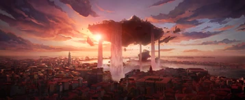 The Headquarters are situated on a remote, volcanic island, with the infrastructure built underground into the rocks. As we only got a 3-second long clip of the island, it is hard to discern if it is based off a real one, and if so, where it is located. On stream, former lore enthusiast (and now Riot employee) Cynprel came to the conclusion that the nearest match was White Island, located off the coast of New Zealand, in the Bay of Plenty; however it is uncertain whether the VPHQ Island was actually based on it or not